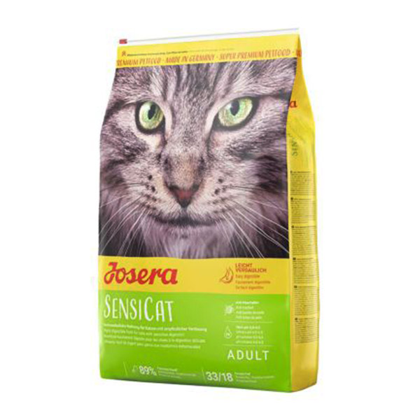 برند جوسرا برای گربه هایی که چنین مشکلی دارند غذای سنسی کت را تهیه کرده که این غذا به راحتی قابل هضم میباشد که به ویژه برای گربه های بالغ حساس به تغذیه غذای کامل است. ترکیب این غذا: