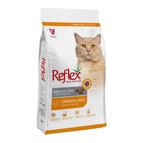 غذای گربه رفلکس با مرغ، یک غذای ممتاز برای گربه حاوی پروتئین مرغ است که تمام مواد مغذی مورد نیاز برای رشد گربه ها را تامین کند. دانه کتان تعادل امگا 3 و 6 و گیاه یوکا در محتوای آمونیاک را کنترل می کند، جذب مواد مغذی را افزایش می دهد. سیستم ایمنی بدن را با استفاده از پودر آب پنیرتقویت می کند وسلامت وعملکرد روده ، رشد حیوانات را بهبود می بخشد.مخمر آبجو در محتوای آن برای پوست سالم و موهای درخشان استفاده می شود.عضلات، اندام ها و سلول های عصبی پشتیبانی می شوند.با ویتامین ها و مواد معدنی غنی شده است.ترکیبات غذا: پروتئین مرغ، سبوس گندم، عطر جگر، ویتامین ها و مواد معدنی، دانه کتان، غلات، ذرت، چربی مرغ، گلوتن ذرت، تفاله چغندر خشک، مخمر آبجو، نمک،، یوکا شیدیگرا، تورین – آنتی اکسیدان ها. روی ،سلنیوم ، آهن ،ید ، مس