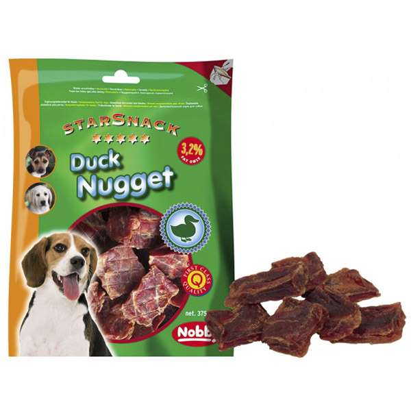تشویقی جدید ازسری StarSnack نوبی آلمان که یک خوراکی عالی برای همه سگ ها است. از مواد اولیه اردک تهیه شده اند و بنابراین بسیار محبوب هستند. این خوراک تهیه شده از ناگت اردک که از 90.8 درصد اردک و تنها 3.2 درصد چربی تشکیل شده است!