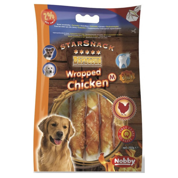 تشویقی جدید ازسری StarSnack نوبی آلمان که یک خوراکی عالی برای همه سگ ها است. از مواد اولیه طبیعی مرغ تهیه شده اند و بنابراین بسیار محبوب هستند. این خوراک تهیه شده ازمرغ بسته بندی شده 45.5 درصد مرغ، 50.2 درصد گوشت گاو و تنها 2 درصد چربی تشکیل شده است. این نسخه مخصوصا برای سگ های بزرگ مناسب است!